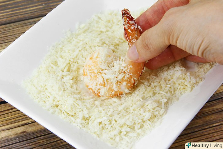 Приготуйте креветки в кокосовій паніровці.для цього рецепта найкраще використовувати духовку. Нещільно оберніть креветки фольгою і покладіть на деко. Готуйте протягом 15 хвилин при температурі 150 °C.[6]