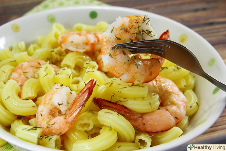 Зробіть пасту з креветками.креветки стануть чудовим доповненням до пасти. На свій смак приготуйте пасту і суміш з сиру пармезан, часнику і сушеного базиліка для аромату. Додайте туди ж кілька свіжоприготованих креветок, щоб отримати поживне блюдо.[8]- Для більшої поживності додайте до страви трохи обсмажених овочів.