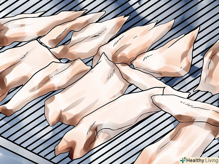 Наповніть піддон коптильні тріскою для копчення.- Щоб надати рибі делікатний димний смак, візьміть тріску з деревини яблуні, вільхи або дуба. Для більш насиченого аромату підійде Букова або ялівцева тріска.