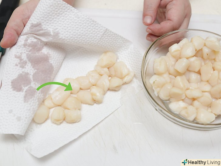 Виберіть сухих гребінців.дізнайтеся у продавця, вологі або сухі Гребінці. Якщо вони мокрі, то їх піддавали хімічній обробці (триполіфосфатом натрію), щоб вони краще вбирали вологу. Сухі гребінці не піддаються обробці, тому вони свіже, легше готуються і мають більш солодкий і солоний смак.[1]- Не купуйте мокрих гребінців, так як після хімічної обробки вони можуть погано смажитися, а залишився речовина додасть їм рибний присмак.