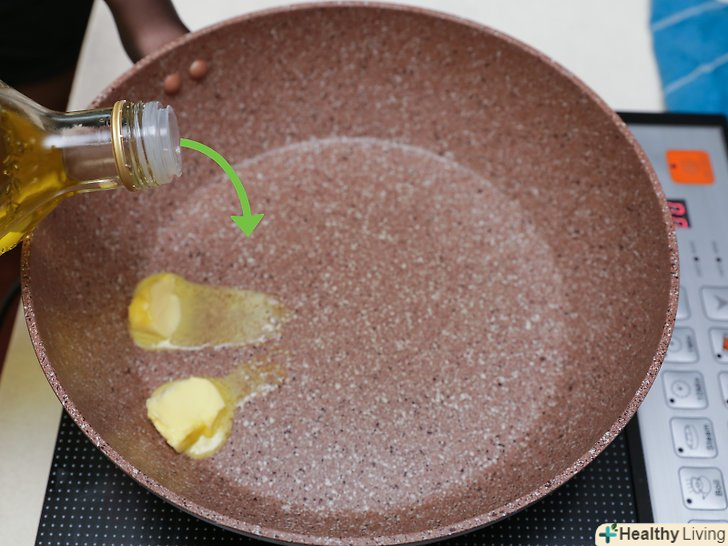 Розігрійте вершкове і оливкове масло.додайте в сковороду з антипригарним покриттям вершкове і оливкове масло і поставте її на середній вогонь. Вершкове масло має повільно розтопитися. Якщо воно шипить, трохи зменшіть вогонь. Як тільки вершкове масло почне випускати пар, сковорода готова до смаження гребінців.[5][6]- Можна також використовувати сковороду з нержавіючої сталі або чавуну. Вона повинна бути досить великою, щоб Гребінці містилися на ній в один шар. Знадобиться також трохи вільного простору між гребінцями, щоб википіла зайва волога.