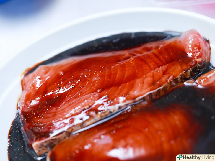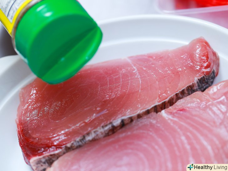 Приготуйте маринад для стейків меч-риби, оскільки маринад додає аромат і зберігає рибу-меч вологою і ніжною.маринад може складатися з різних інгредієнтів в залежності від ваших уподобань. Почніть з поєднання рідин, таких як соус теріякі, соєвий соус, винний оцет, лимонний фреш, заправки для салату, томатний соус або кетчуп. Трохи меду або коричневого цукру додадуть солодкий смак. Якщо ви віддаєте перевагу гострий маринад, спробуйте порошок чилі або соус Табаско. Невелика кількість масла, такого як вершкове або оливкове масло, змішують в маринаді, щоб запобігти стейки меч-риби від прилипання до решітки. Якщо ви віддаєте перевагу смажити рибу-меч без маринаду, просто посипте стейки приправами на ваш вибір. Свіжовичавлений сік лимона або лайма виявляє тонкий аромат риби-меч.