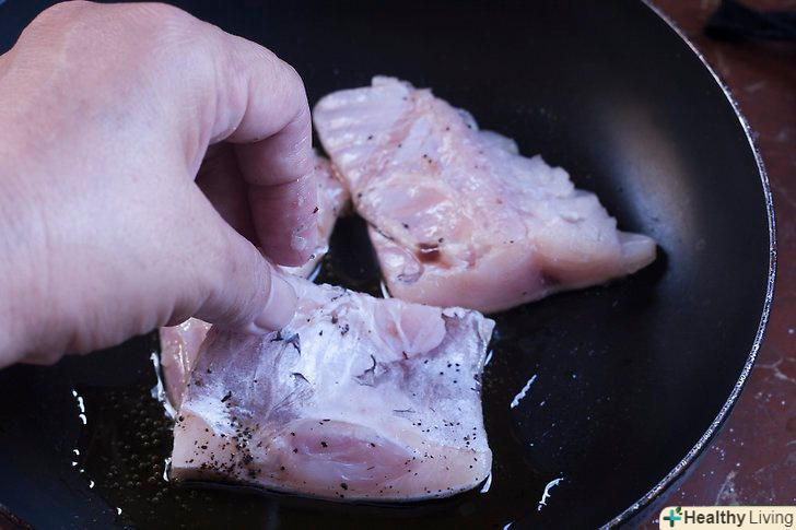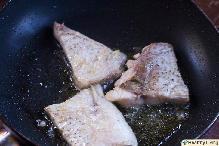 Переверніть філе і закінчите приготування.філе слід готувати з іншого боку протягом приблизно трьох хвилин. Риба готова, коли вона більше не прозора і легко відділяється при проколюванні виделкою.