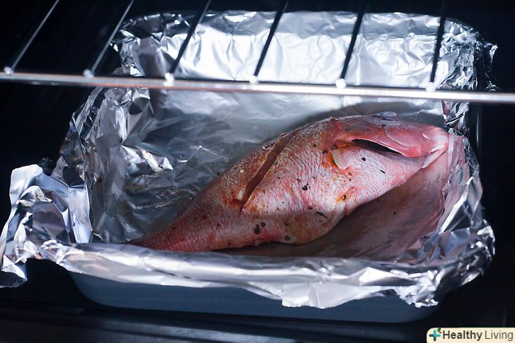 Підготуйте форму для випічки.виберіть металеву, скляну або керамічну форму для випічки або блюдо, яке досить велике, щоб вмістити рибу. Застеліть форму алюмінієвою фольгою, щоб запобігти рибу від прилипання.