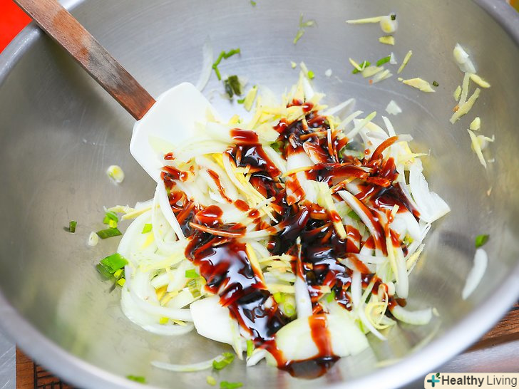 - Трохи соєвого соусу, трохи кунжутного масла, тертий імбир, кілька крапель рисового вина, насіння кунжуту.