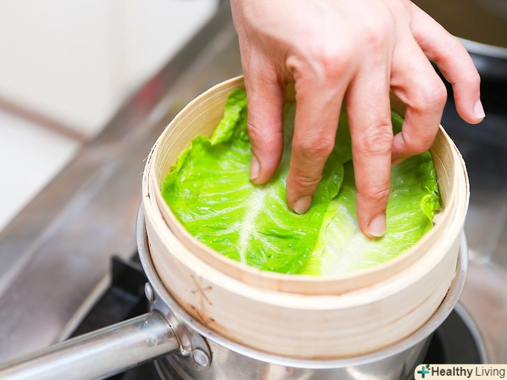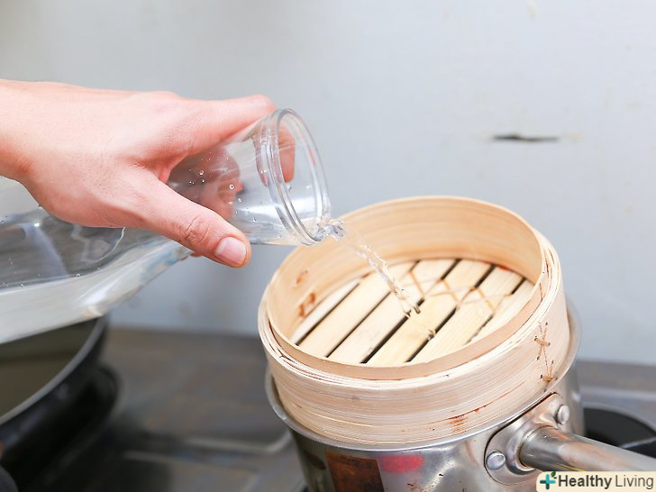 Приготуйте парову кошик.налийте воду в каструлю або сковороду вок на 8-10 см. перевірте, щоб парова кошик добре сиділа на сковороді або каструлі, і при цьому між поверхнею води і кошиком було достатньо простору. Увімкніть плиту і доведіть воду до кипіння.