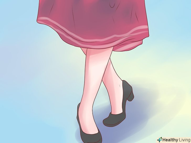 Заведіть праву ногу за ліву.поставте вашу праву ногу на кілька сантиметрів далі лівої, спираючись на підйом стопи і переносячи більшу частину ваги на передню ногу.