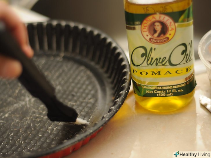 Змастіть сковороду для випічки оливковою олією, поки розігрівається духовка.