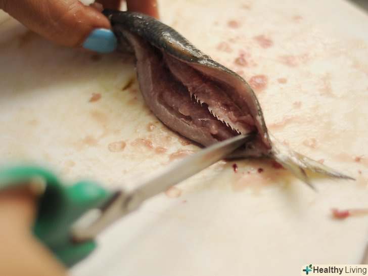 - Використовуйте гострі ножиці, щоб відрізати хребет, де він з'єднується з головою і хвостом.