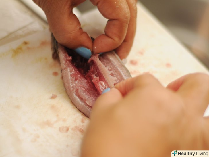 Очистіть рибу від кісток.- Використовуйте філейний ніж, щоб розрізати уздовж кожної сторони хребта позаду ребер.