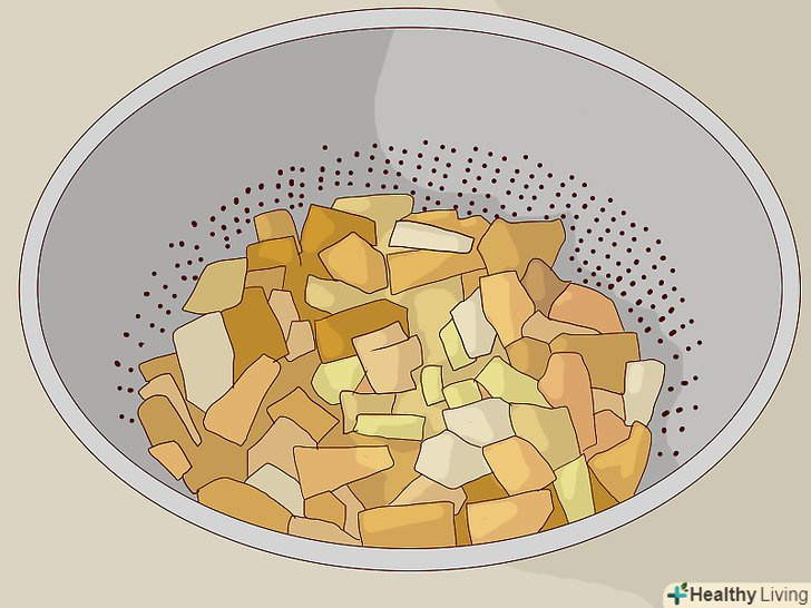 Перш ніж їсти салат, злийте зайву воду.якщо ви зберігали салат у воді, дістаньте його з холодильника і викладіть в друшляк над раковиною або перекладіть фрукти в іншу тарілку за допомогою шумівки.