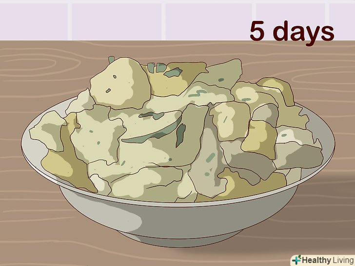 Зберігайте салат не більше 5 днів.багато салатів з готових продуктів містять майонез та інші інгредієнти, які починають псуватися в холодильнику приблизно через п'ять днів. Зберігайте салат не довше, ніж передбачає термін придатності найбільш швидкопсувного інгредієнта.[11]- Не містять майонезу салати з макаронів можна зберігати 5-7 днів.