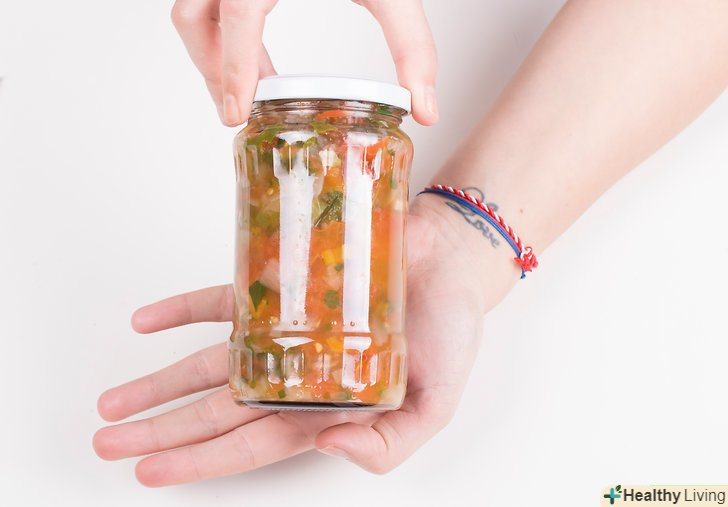 Перевірте герметичність, натиснувши на кришки.якщо кришка видала бавовна, коли ви натиснули і відпустили, можливо, вона не була належним чином запечатана. Ви можете поставити незапечатані банки в холодильник, щоб відразу їх використовувати, або законсервувати їх знову.