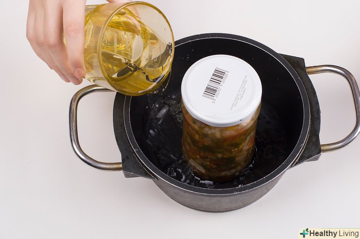 Поставте банки у велику каструлю.наповніть каструлю водою, поки вона не покриє банку на 5 см.Увімкніть пальник на високу потужність і доведіть воду до кипіння.- Якщо ви живете низько над рівнем моря, кип'ятіть, банки протягом 15 хвилин.