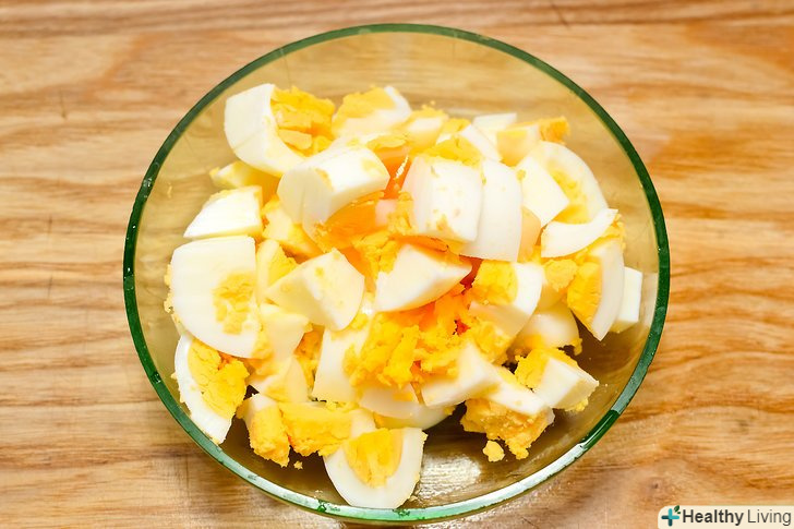 Очистіть яйця і обережно наріжте кубиками.кубики повинні бути приблизно 0,6 см.