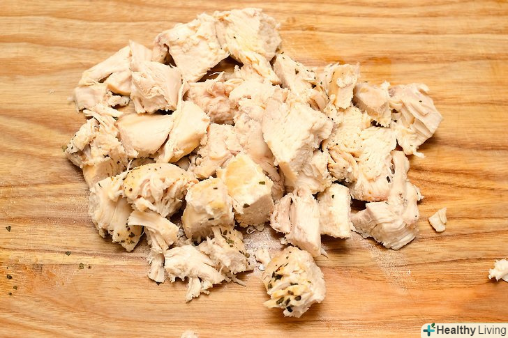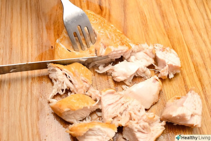 Наріжте курку на шматочки.в ідеалі, шматочки курки повинні бути товщиною приблизно 0,6-1,2 см.