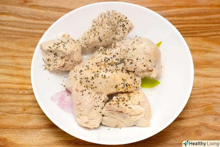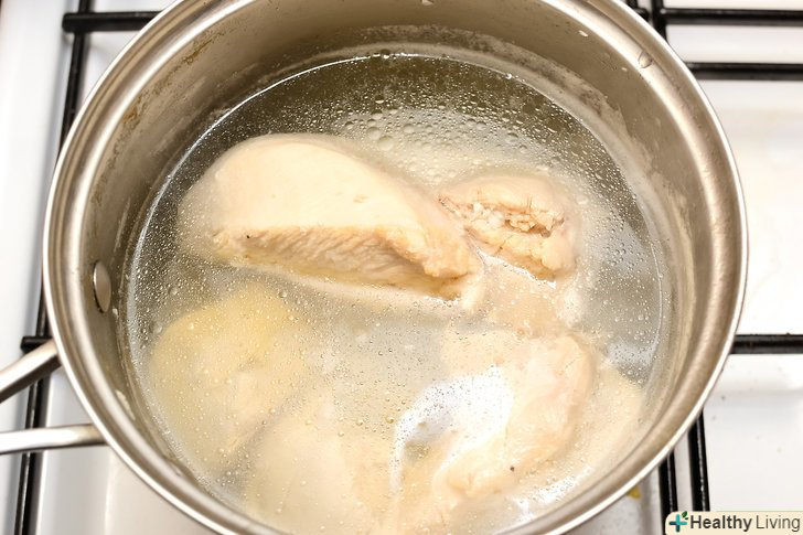 Повільно варіть курку в підсоленій воді або курячому бульйоні, поки курка не почне розпадатися на шматочки.на маленькому вогні це повинно зайняти близько години.