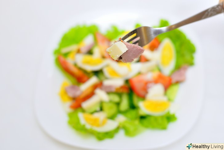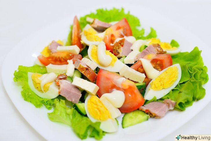 Визначтеся зі стратегією.якщо вам хочеться придумати свій власний салат, то переходите до наступного кроку і дотримуйтесь кожного етапу інструкції. Якщо ж вам потрібен швидкий варіант, ось кілька перевірених ідей:- Салат шеф-кухаря: шматочки шинки, сир, яйця, зварені круто, огірки і помідори на ложі з листя салату. Такий салат зазвичай заправляють густими, ароматними заправками, наприклад, заправкою для салату "Цезар",заправкою "Ранчо" Або соусом "Тисяча островів".