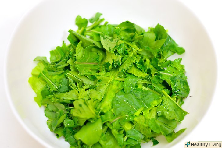 Додайте гостру пряну зелень (за бажанням).якщо ви хочете отримати більш яскравий смак, додайте жменьку радіккіо, крес-салату, кульбаби або цикорного салату. Ця зелень має яскравий перцевим смаком.[2]
