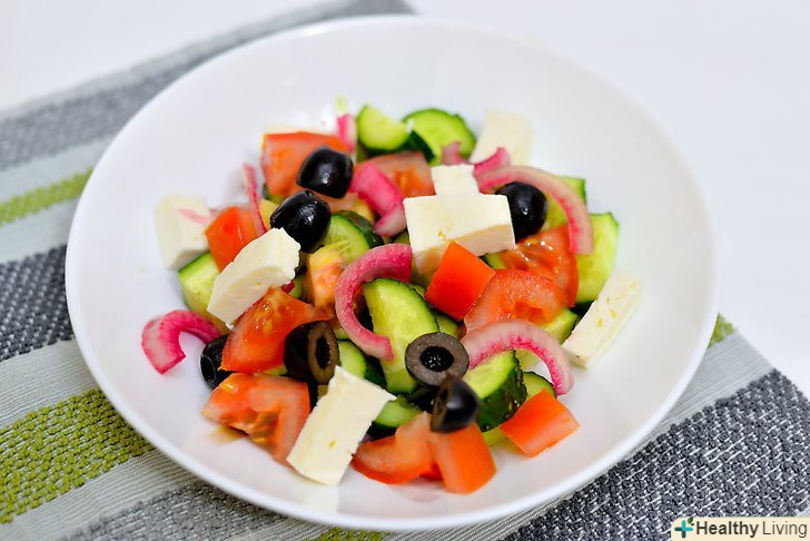 Холодний салат в якості літньої закуски.ці салати вимагають свіжих якісних інгредієнтів. По можливості купуйте їх в магазині в той же день, коли збираєтеся готувати. Помідори чудово поєднуються з різними овочами. Ось кілька прикладів:- Грецький салат: 2-4 помідори (розрізати на вісім частин), 1 великих огірка (нарізати крупно), 1 маленька червона цибулина (нарізати тонко). Приправте великою кількістю салатної заправки або грецької заправкою з часником, орегано і чорним перцем.[3]