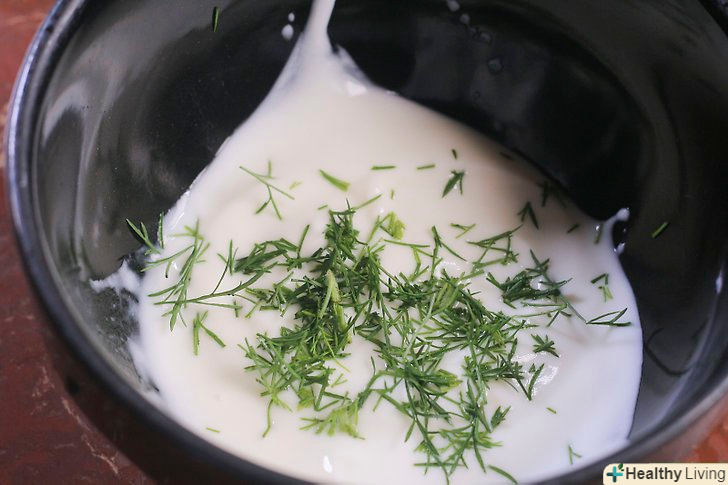 Візьміть сервірувальну миску і приготуйте заправку.покладіть в миску сметану і додайте нарізаний кріп або шніт-цибулю. Налийте оцет, потім додайте перець і ще трохи солі. Перемішайте все виделкою або шумівкою.
