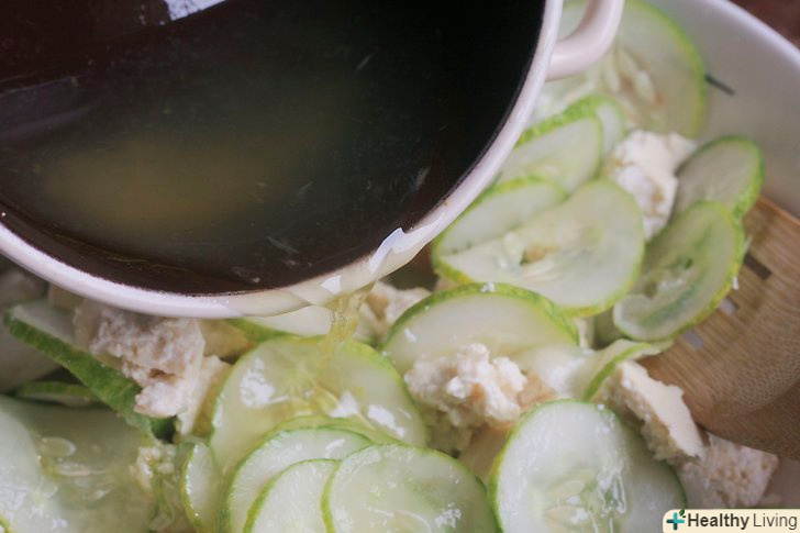 Полийте огірки заправкою.злегка перемішайте огірки, щоб рівномірно розподілити заправку.