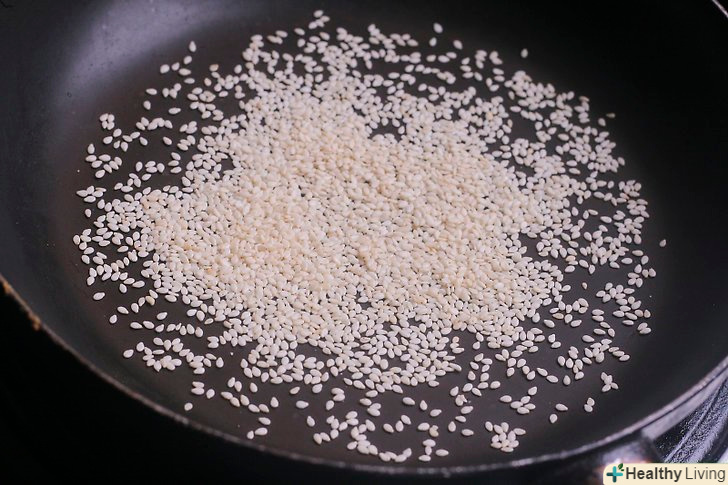 При необхідності засмажте насіння кунжуту.даний крок можна пропустити, якщо ви придбали вже підсмажені насіння кунжуту. В іншому випадку обсмажте насіння кунжуту на сухій сковороді і малому вогні, безперервно помішуючи. Приблизно через 2 хвилини насіння придбають золотистий відтінок, і ви відчуєте приємний аромат. Після цього пересипте насіння в невелику миску, щоб вони охололи.