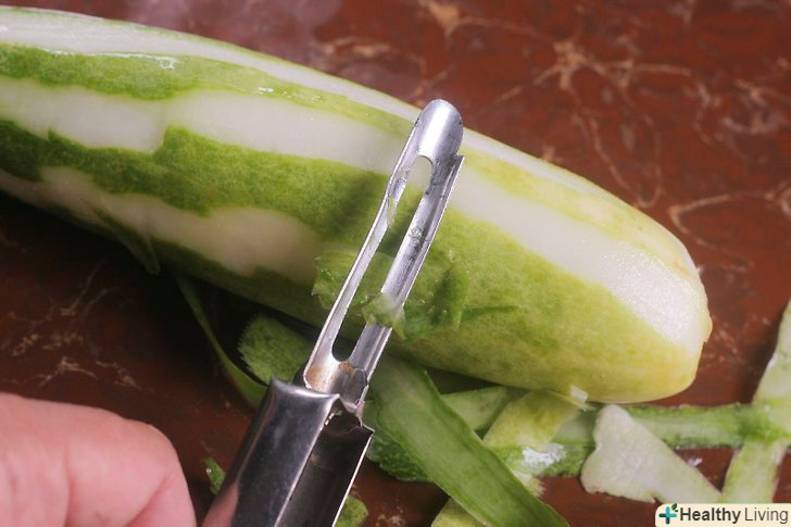 Почистіть огірки.можна повністю очистити огірки від шкірки або зняти її смугами, щоб надати їм більш витончений вигляд.