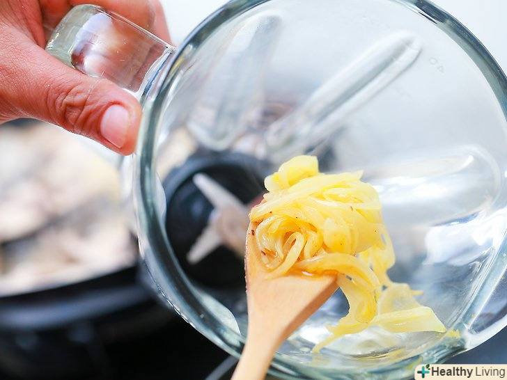 Перекладіть цибулю в кухонний комбайн або блендер і подрібніть до однорідної маси у вигляді пюре.
