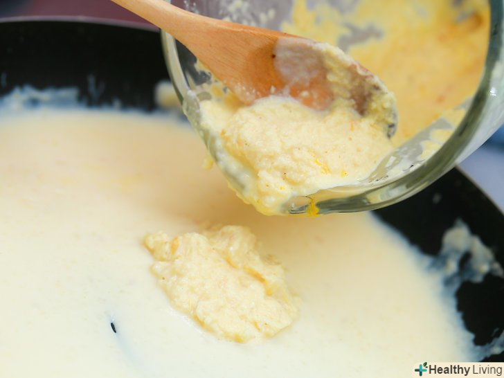 Зніміть субстанцію з вогню і дайте трохи охолонути, поки ви в окремій каструлі доведете до кипіння 1 чашку (237 мл) молока.