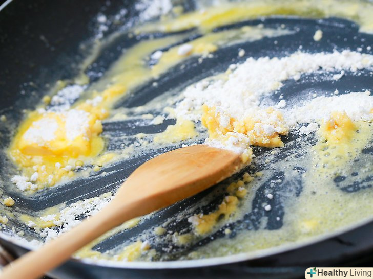 Додайте до вершкового масла 2 столові ложки (30 г) борошна, щоб зробити субстанцію для приготування соусу.це перший етап приготування будь-якого французького соусу.- При формуванні субстанції для приготування соусу завжди треба брати вершкове масло і борошно в рівних пропорціях.