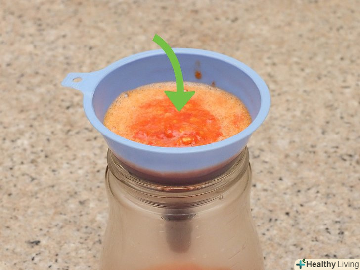 Процідіть суміш.через два тижні дістаньте соус з холодильника. Процідіть його через дрібне сито, щоб видалити насіння. Не зайвим буде нагадати, що для збору соусу під сито необхідно підставити миску або банку.[12]