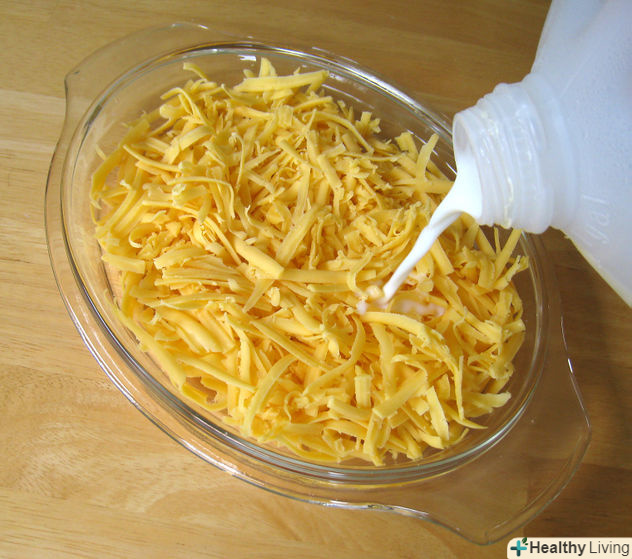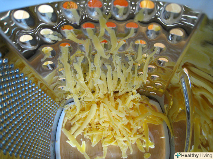 Потріть сир в миску.вам не потрібно вимірювати кількість сиру. Просто переконайтеся, що дно миски повністю покрито сиром. Кількість сиру, яке вам слід взяти, буде залежати від того, скільки соусу ви хочете приготувати і від розміру вашої миски.