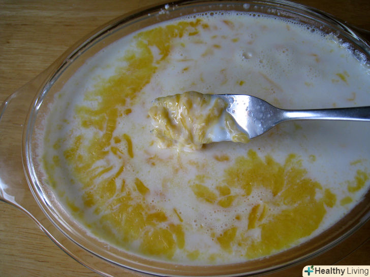 Перед тим, як додавати кукурудзяний крохмаль, додайте пару столових ложок молока в кукурудзяний крохмаль і добре перемішайте; кукурудзяний крохмаль повинен повністю розчинитися в молоці, після чого отриману суміш можна додавати в миску.