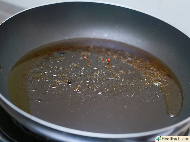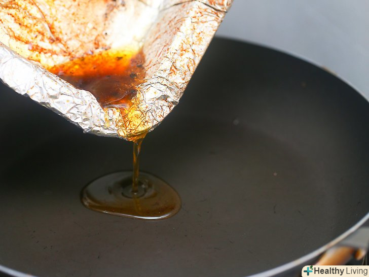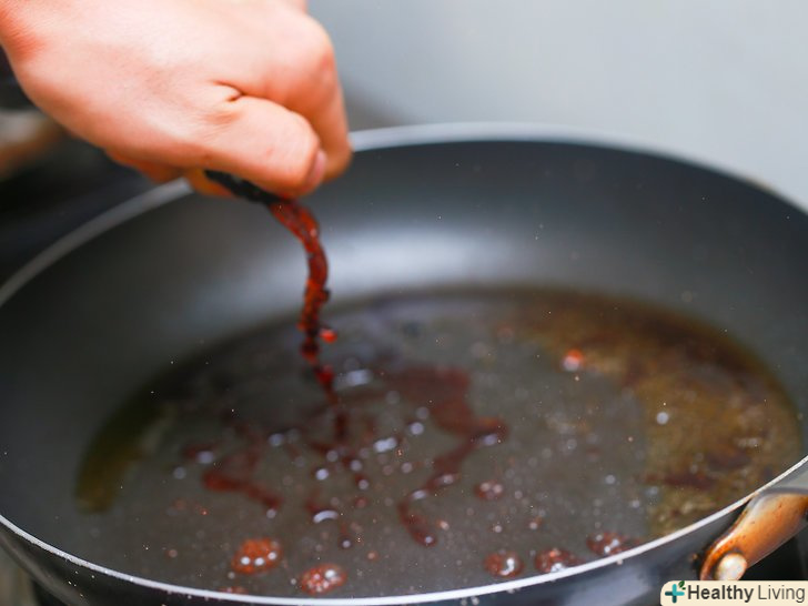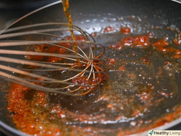 Налийте невелику кількість рідини на сковороду, щоб розчинити залишки зажарок і пригорілого м'ясного соку.налийте в сковороду трохи червоного вина, води або бульйону, щоб отскоблить засмажені або пригорілі шматочки м'яса і м'ясного соку від дна сковороди. Як тільки ви наллєте в сковороду рідину, ви почуєте характерне шипіння, за допомогою віночка або лопатки швидко отскоблите все засмажені залишки від сковороди.- Цей метод, коли ви наливаєте холодну рідину на гарячу сковороду, використовується для того, щоб зібрати всі самі ароматні, карамелізовані шматочки після обсмажування, а потім додати їх в соус.[4]