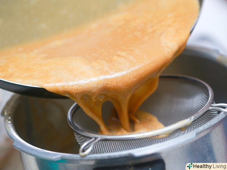 Процідіть витопився жир, щоб відокремити його від рідини.Візьміть часте ситечко, відокремте жир від рідини. Збережіть обидва інгредієнти. Ви будете змішувати жир з борошном, він буде служити основою для приготування ру, як вершкове масло.- Щоб приготувати підливу більш швидким способом, пропустіть цей крок, просто розігрійте 2 столові ложки витопився жиру. Майте на увазі, шматки спека можуть утворити грудочки в підливі, і вона може вийти менш смачною.[3]