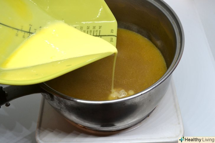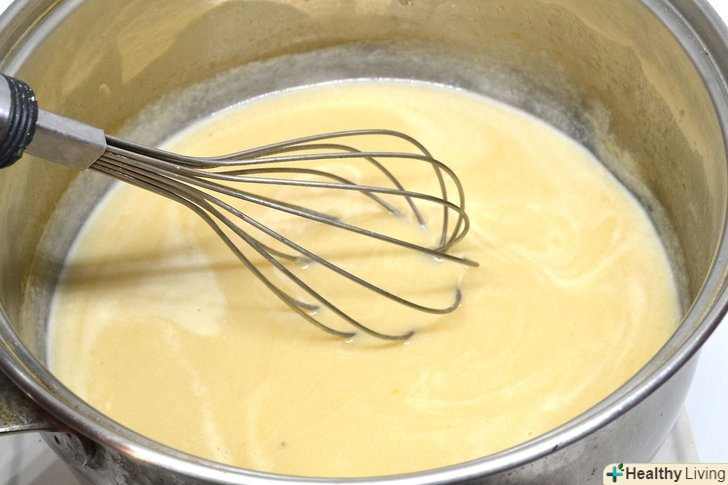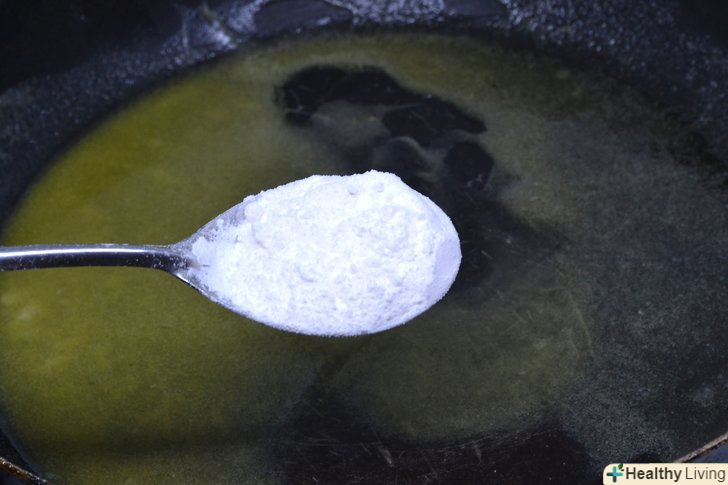 Розтопіть вершкове масло в сковороді на середньому вогні.для початку розтопіть 1 столову ложку (15 г) вершкового масла в невеликій сковороді. Висипте на масло щіпку борошна і, якщо суміш почне повільно пузиритися, значить, воно досить нагрілося.[1]- Замініть вершкове масло рослинним, якщо хочете приготувати безмолочну суміш.