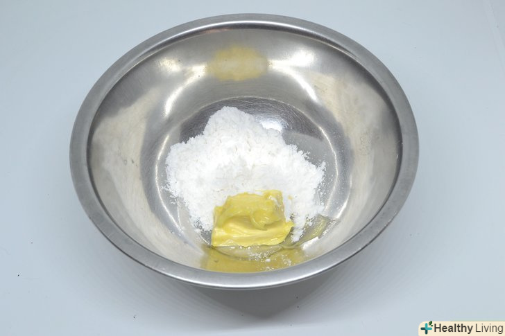 Змішайте в невеликій мисці рівні частини розм'якшеного вершкового масла і борошна.почніть з 1 столової ложки (15 г) масла і 1 столової ложки (9 г) борошна і додайте більше, якщо потрібно. Розм'якшіть масло, нагріваючи його по 5-10 секунд в мікрохвильовій печі.[8]- Масло не повинно повністю розтопитися.