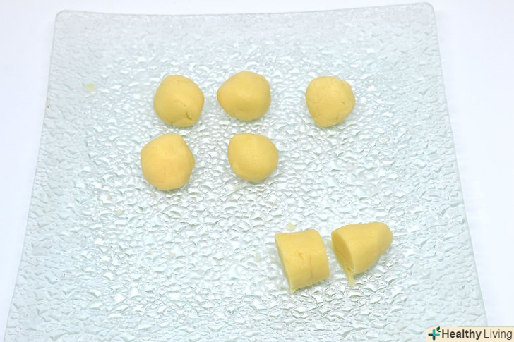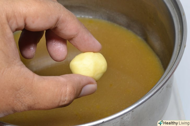 Замісіть суміш і скачайте її в невеликі кульки.Масло і борошно можна розмішати виделкою до однорідного стану. Потім замісіть суміш пальцями до утворення пасти.[9]- Приготуйте більше бер-Маньє в кухонному комбайні і зберігайте кульки в морозильній камері. Перед використанням нагрійте їх до кімнатної температури.