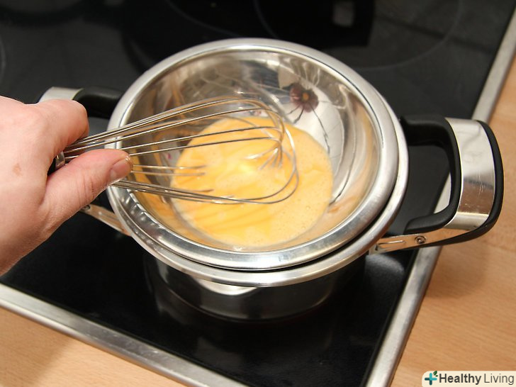 Збивайте інгредієнти соусу, поки вони знаходяться на водяній бані.збивайте до тих пір, поки консистенція жовтків не досягне консистенції густого крему.