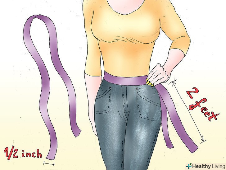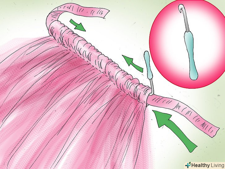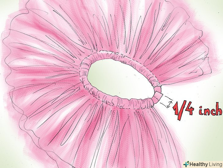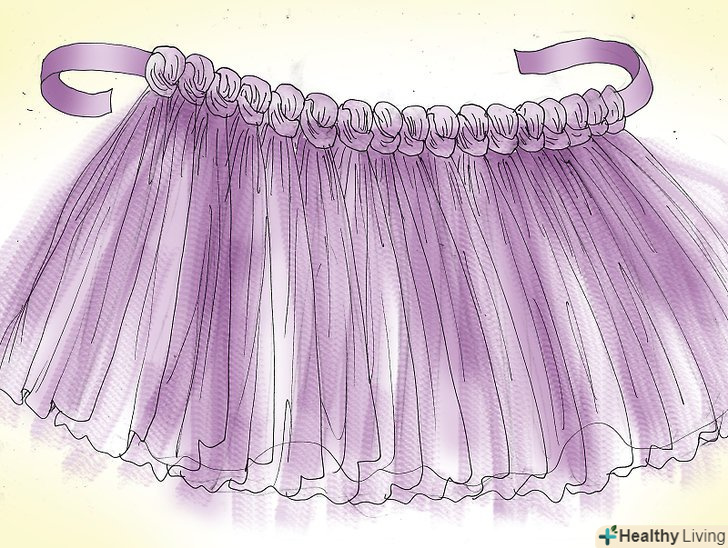 Зробіть гумку на талію.гумку на туту, яку не потрібно шити, зробити дуже просто, вам потрібно просто зав'язати на талії стрічку. Виберіть стрічку під колір тюлі, по крайней мере, близько 1,5 см шириною. Зав'яжіть її навколо талії, де ви хочете, щоб ваша туту сиділа, і додайте зайвих 60 см перед тим, як її відрізати.