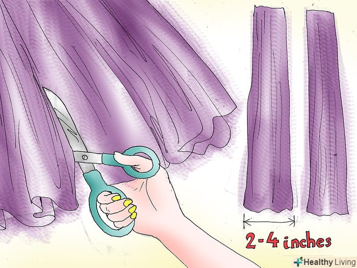 Розріжте вашу тюль на смужки.розкладіть вашу тюль і розріжте її на десятки довгих смужок близько 5-10 см шириною. Для більш об'ємної пишної спідниці робіть смужки ширше. Щоб зробити більш скромну туту, робіть смужки вужче.
