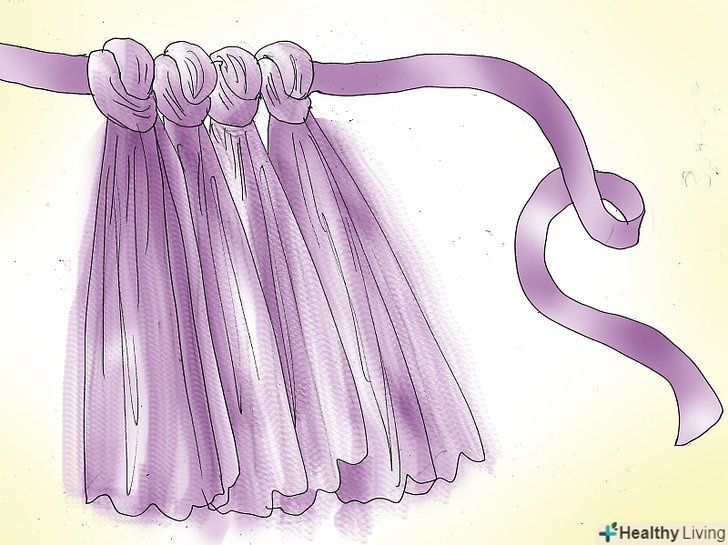 Закінчите зав'язувати смужки.потрібно щоб у стрічки було по 30 см вільної довжини по краях, щоб ви могли її зав'язати. Коли ви прив'яжете достатню кількість смужок і залишите вільними потрібні вам кінці, ваша туту буде готова.