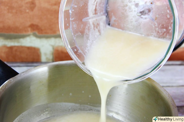 Налийте в сковороду суміш кукурудзяного крохмалю і молока.акуратно налийте суміш і швиденько її збийте, поки соус не стане однорідним. Додайте в сковороду знежирене молоко і збивайте суміш до тих пір, поки інгредієнти остаточно не перемішаються.
