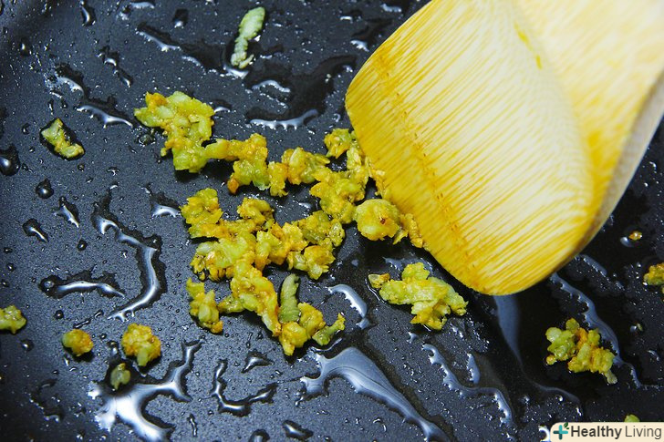 Обсмажте часник в оливковій олії протягом хвилини.нагрійте оливкову олію в сковороді на середньому вогні. Киньте на сковороду чотири зубчики часнику. Обсмажуйте їх протягом 60 секунд, час від часу помішуючи часник.