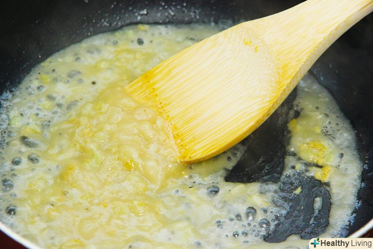 Додайте в сковороду цибулю-шалот.подрібніть цибулю-шалот і додайте його в нагріте на сковороді масло. Обсмажте цибулю протягом чотирьох-п'яти хвилин, не забуваючи періодично його помішувати. Лук повинен стати м'яким. Якщо хочете, додайте сіль за смаком.