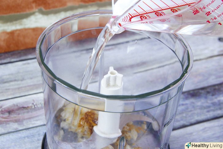 Додайте цибулю-шалот і інші інгредієнти в блендер.приберіть солону цибулю-шалот з вогню і акуратно пересипте його в блендер. Додайте в блендер воду, кешью, лимонний сік, білий перець, неактивні харчові дріжджі, мускатний горіх і часник. Накрийте блендер кришкою.