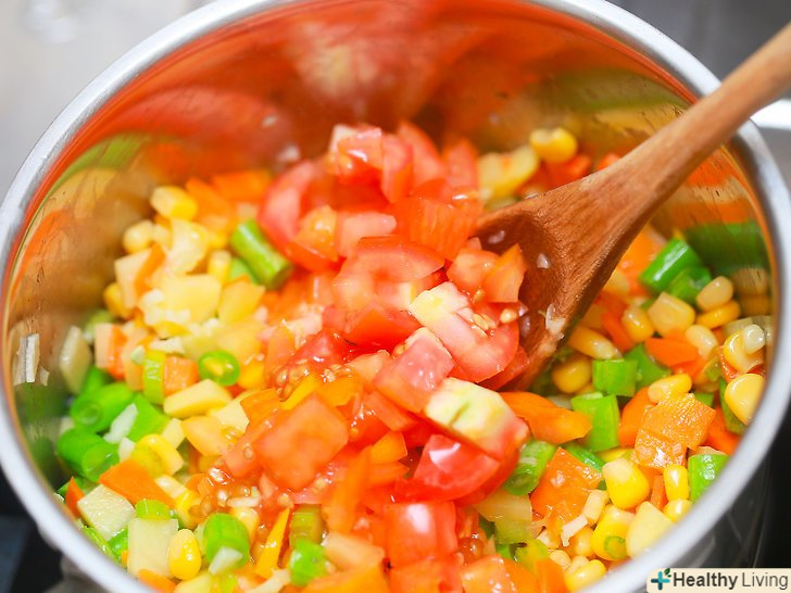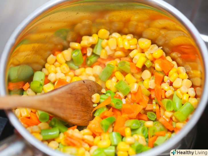 Додайте інші овочі.це зелена квасоля, селера, кукурудза та інші овочі, які ви хочете додати в суп. підсмажуйте овочі на малому вогні ще 5 хвилин. Ви дізнаєтеся, що овочі готові, коли вони стануть м'якими і ароматними. Не чекайте, поки вони придбають темно-коричневий відтінок.-