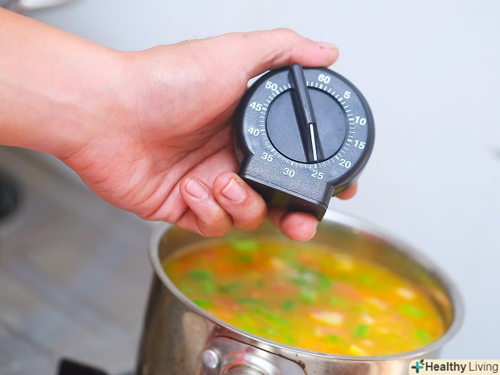 Варіть суп 25-30 хвилин. [11] якщо ви зменшили вогонь, через деякий час його, можливо, доведеться трохи збільшити, щоб суп знову почав злегка кипіти.