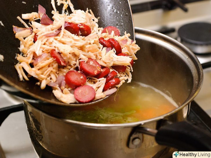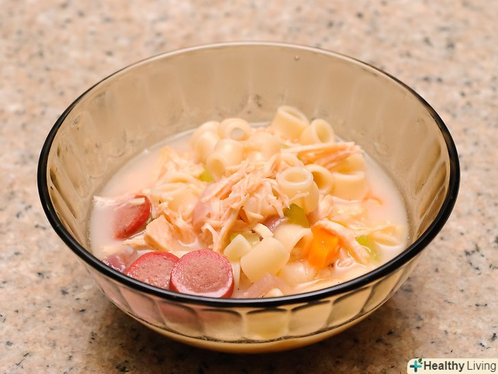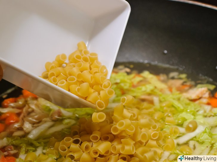 - не додавайте макарони і капусту на цьому етапі. Обидва інгредієнта потрібно додавати в самому кінці процесу приготування. Якщо покласти їх занадто рано, вони розпадуться і перетворяться в в'язку масу.[4]